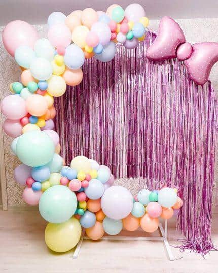 Один из способов использования воздушных шаров при оформлении сцены — это создание гирлянды из шаров. Эта гирлянда может быть размещена над сценой или на боковых стенах. Выбирая цвета для гирлянды, следует руководствоваться общей цветовой гаммой мероприятия. Например, можно выбрать нежные оттенки розового, фиолетового или белого цвета.