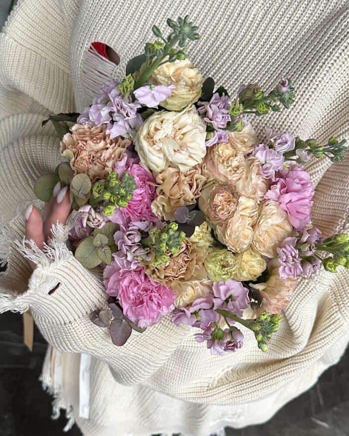 Букет из микса пастельных цветов — нежное и уникальное решение для подарка близкому человеку.